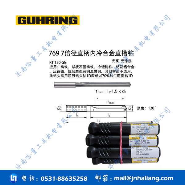 钴领钻头769 7倍径直柄内冷合金直槽钻