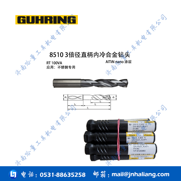 钴领合金内冷钻头8510 3倍径直柄内冷合金钻头