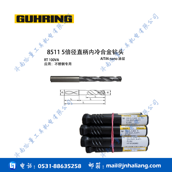 钴领内冷钻头8511 5倍径直柄内冷合金钻头