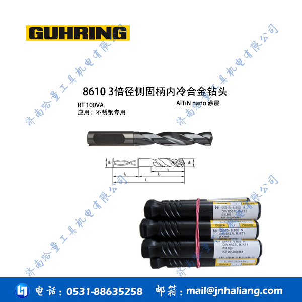 钴领钻头8610 3倍径侧固柄内冷合金钻头