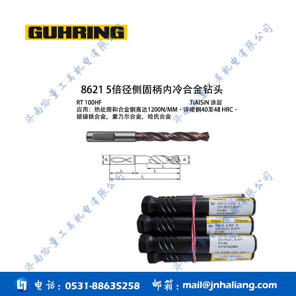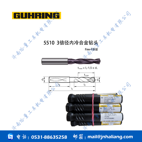 德国钴领钻头5512 7倍径直柄内冷合金钻头